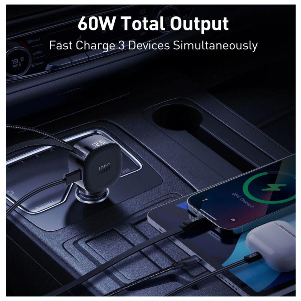 شحن متكاملة أثناء تنقلك مع شاحن سيارة جودا الجديد. يتميز هذا الشاحن بقوة 60 واط لتوفير شحن سريع وفعّال لجميع أجهزتك، مع كيبل تايب سي مدمج يمكن سحبه بسهولة عند الحاجة، مما يضمن تنظيمًا أفضل وتخزينًا مريحًا. كما يأتي الشاحن بمنفذين؛ منفذ تايب سي لتقنية الشحن السريع لشحن الأجهزة المتطورة، ومنفذ يو اس بي للأجهزة التقليدية.
